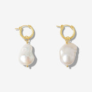 - Classic and simple gold hoops with large freshwater baroque pearl charms.