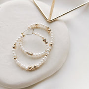 Midsize hoop earrings with a mixture of small baroque freshwater pearls and variable-sized beads.