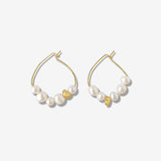 Handmade freshwater pearl hoop earrings made of 5 freshwater pearls and a metal bead on each side on 14k gold-filled or 925 sterling silver wire.