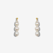 This is the third design of our "Valeria" ear studs series, featuring three medium-sized baroque pearls with a sphere gold ear stud on each side.