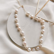 Three large baroque pearls with 14k gold filled or sterling silver link chain (length adjustable).