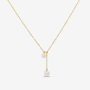 Jade II Duet Pendant Necklace featuring two freshwater baroque pearls (one slightly bigger than another). The bigger pearl can be slid up and down to adjust the necklace to your neckline.