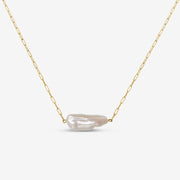 Handmade pearl necklace featuring an extra-large Keshi pearl pendant on a link chain necklace