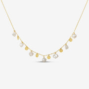 - NEW version of our Kayla Necklace featuring 7 Keshi pearls and 6 shiny disc charms.